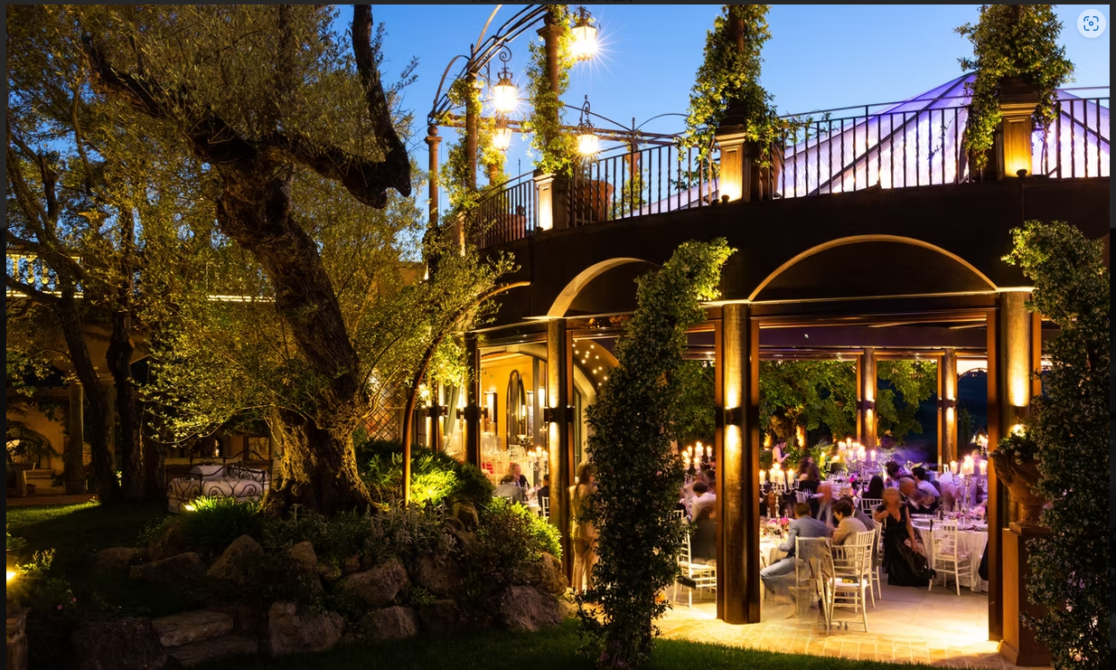 Timeless Elegance: The villa’s grand arches, exposed wooden beams, and warm terracotta tones create an intimate yet regal atmosphere, perfect for a romantic wedding.
