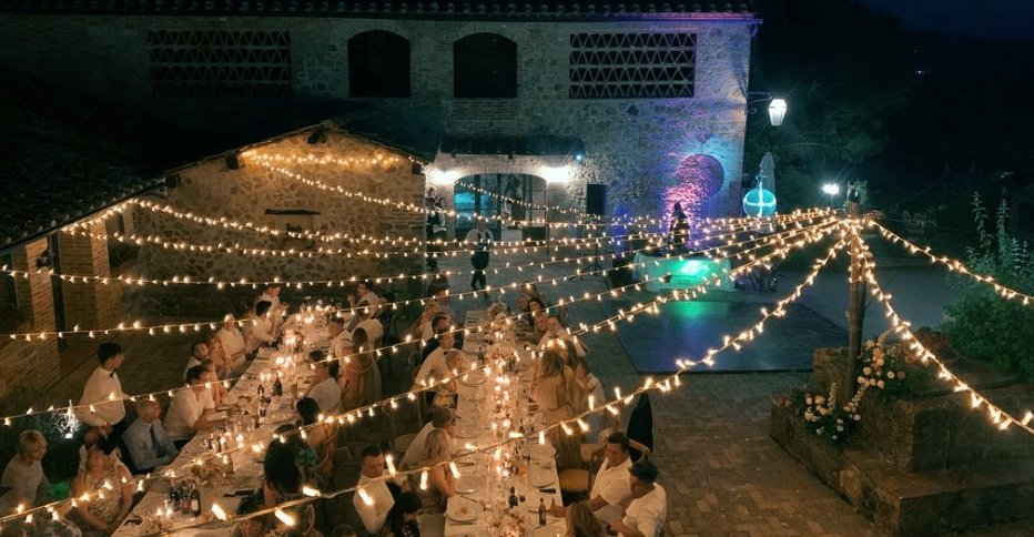 Courtyard wedding Tenuta di Papena/sleeps 24/min 3-night stay from £16,995